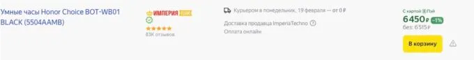 Теперь к самому главному — официальный прайс Honor во многих странах составляет $80-$100 (~8-10 косарей), а мы нашли свежие Choice Watch на Яндекс Маркете всего за 6515 рублей. Также не забывайте, что вы можете получить нехилый кэшбек при оплате картами некоторых банков.