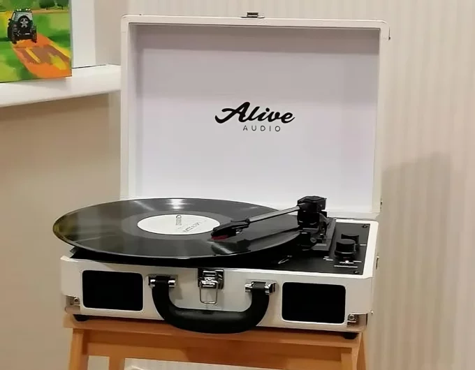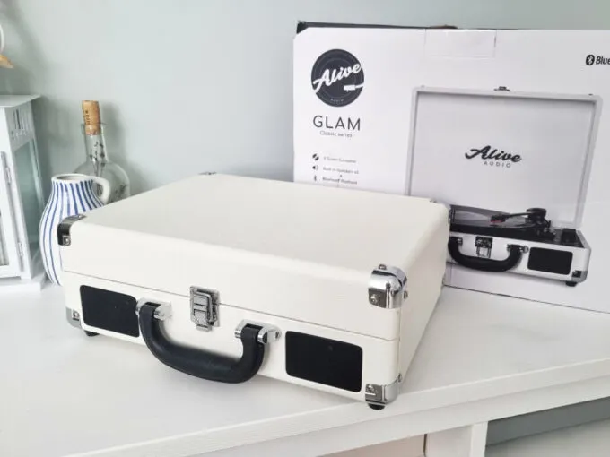 Проигрыватель Alive Audio GLAM Milk установлен в небольшой чемодан, поэтому его можно легко перемещать между локациями и хранить без опасения, что девайс сломается. Модель вышла с ременным приводом, который позволяет воспроизводить музыку ровно и без скачков.