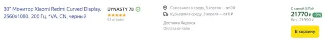 Обычно за Xiaomi Redmi Curved Gaming Display просят больше 25 тысяч рублей, но сейчас на Яндекс Маркете этот шикарный монитор можно урвать за 21 990 рублей. А с кэшбеками некоторых банков он обойдётся дешевле 20 косарей.