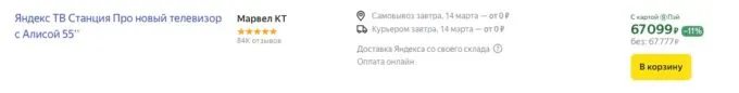 Обычно за флагманскую Яндекс ТВ Станцию Про просят под 75 тысяч рублей, но сейчас её можно купить на Яндекс Маркете за 67 777 рублей. Также не забывайте, что многие банки предлагают жирный кэшбэк за покупки на этой платформе.