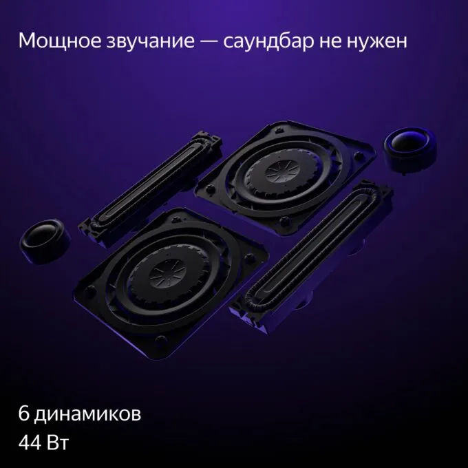 Отдельного внимания заслуживает акустическая система Яндекс ТВ Станции Про. Тут сразу 6 встроенных динамиков с Dolby Audio, которые выдают суммарную мощность в 44 Вт. У многих конкурентов стоят откровенно паршивые колонки на 15 Вт, из-за чего приходится докупать саундбары. В случае с нашим лотом про это можно забыть.