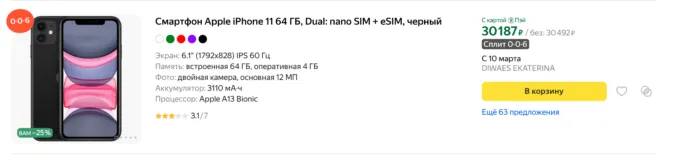 Поэтому iPhone 11 за 40-50 тысяч рублей — очень сомнительное решение. Логичнее докопить до iPhone 13, который сейчас можно взять примерно за 55 тысяч рублей. Но что, если мы скажем вам, что iPhone 11 сейчас можно взять за 30 тысяч рублей? Мы и сами удивились, обнаружив сегодня такой минимальный прайс на Маркете. Сначала пришла мысль, что это девайс из раздела «Уценка», но нет — лот относится к разделу с новыми смартфонами.