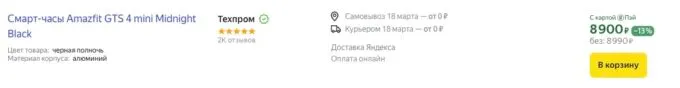 Сейчас на Яндекс Маркете стильные Amazfit GTS 4 mini можно купить всего за 8990 рублей, а с кэшбеком некоторых банков вы можете сэкономить больше тысячи рублей.