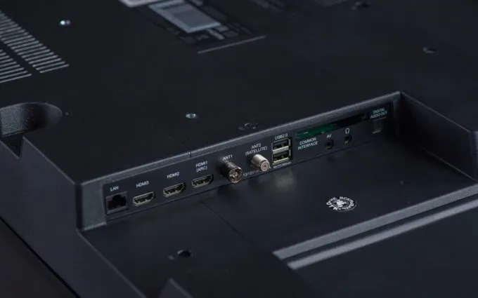 На корпус сзади вынесены самые нужные порты: 2 х USB-A, 3 х HDMI 2.0, RJ-45 (Ethernet) для кабельного интернета, AV-вход, 3,5-мм разъём для наушников или колонок, оптический аудиовыход и слот CI/CI+. Конечно же, в Tuvio 4K ULTRA HD QLED есть Wi-Fi и Bluetooth. Кстати, этот модуль обеспечивает подключение пульта с голосовым управлением.