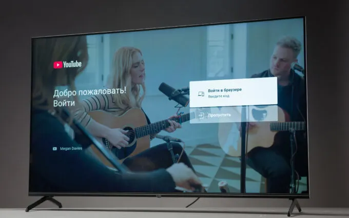 Благодаря безрамочному дизайну смарт-ТВ Tuvio отлично впишется как в гостиную, так и в спальню или на кухню. Тут всё ограничивается только площадью квартиры/дома и вашей фантазией. В комплекте идут две минималистичные ножки, но при желании девайс можно повесить на стену с помощью VESA-крепления.