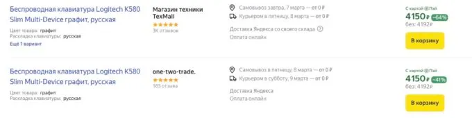 Прямо сейчас на Яндекс Маркете бомбовую Logitech K580 Slim Multi-Device с русской раскладкой можно забрать всего за 4192 рубля. Также не забывайте, что некоторые банки предлагают солидный кэшбек за покупки на этой площадке.