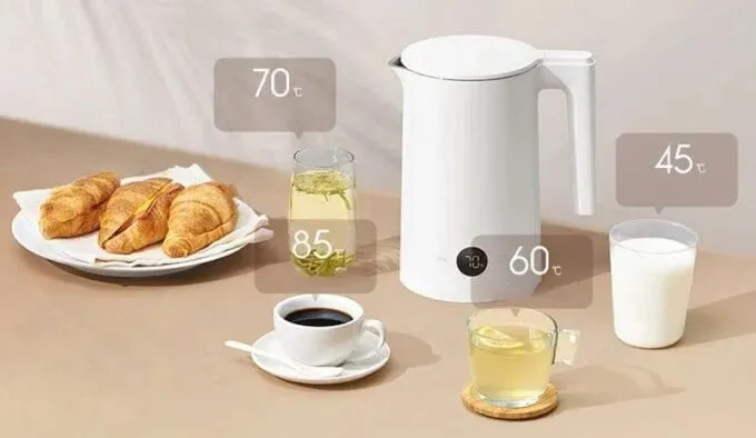 Xiaomi Thermostatic Electric Kettle 2 — минималистичный электрочайник с лаконичным дизайном. На белом корпусе выделяется всего один элемент управления — футуристичный дисплей, который отображает информацию о работе девайса и температуре воды.
