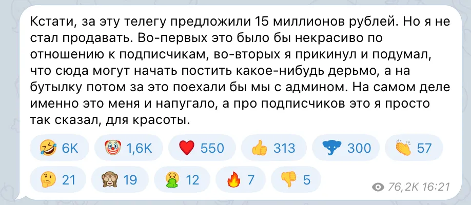 Мэддисон рассказал, сколько ему предложили за продажу телеграм-канала.  Почему эта сделка не состоялась?