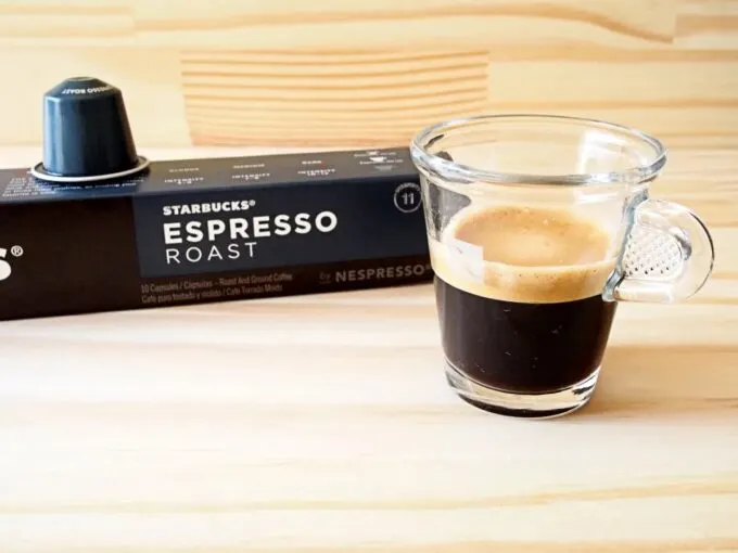 Starbucks Espresso Roast — насыщенный эспрессо с карамельными нотками, который может выступать основой фирменного латте (разумеется, нужно взбить молоко отдельно и долить в кофе). Интенсивность этого напитка зашкаливает — 11/12. На это повлияла максимальная обжарка.