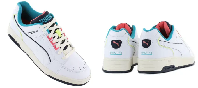 Теперь переходим к обуви! Первый лот – белые Puma Slipstream Lo STB. Эта модель впервые появилась в далеком 1987-м, но с тех пор пережила несколько переосмыслений. Главными фишками, впрочем, остаются верх из натуральной кожи, массивная подошва и детали, выполненные в ярких цветах.
