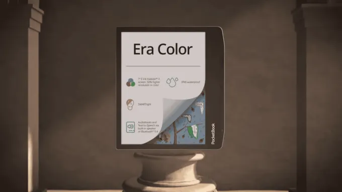 PocketBook Era Color имеет корпус с плоскими рамками и весом 235 граммов. Экран E Ink Kaleido 3 получил диагональ 7 дюймов и разрешение 1264 х 1680 пикселей в монохромном режиме. В цветном режиме оно снижается до 632 х 840 пикселей, но для разглядывания цветных иллюстраций и комиксов сгодится.