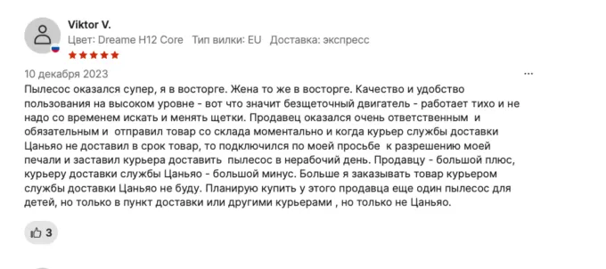 О том, что пылесос очень хорош, говорят и его владельцы. Вот примеры отзывов от покупателей на AliExpress: