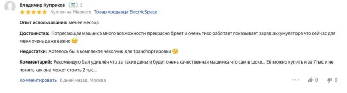 От одной зарядки машинка может проработать до 3 часов. За это время можно перестричь всех членов семьи. Заряжается гаджет от USB-C, что также можно записать в плюсы.