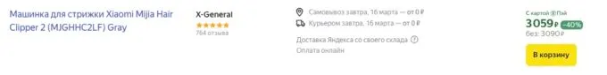 Сейчас на Яндекс Маркете флагманскую машинку для стрижки Xiaomi Mijia Hair Clipper 2 можно урвать за 3090 рублей и кэшбекнуть до 30% в некоторых банках. Ещё можно разбить покупку в Сплит и выплачивать по 773 рубля каждые две недели.