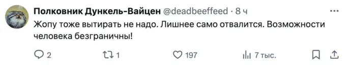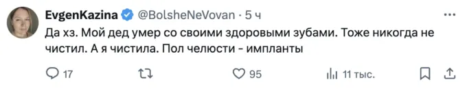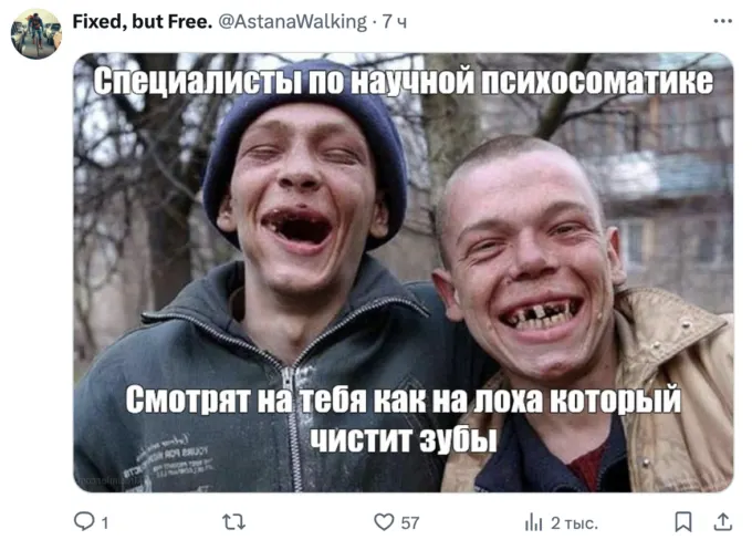 Но большая часть, конечно же, высмеяла идею, что чистить зубы не надо, а с запахом изо рта надо бороться с помощью психолога.