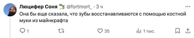 «Да, зубы восстанавливаются сами, как и любые другие кости в нашем организме», — заявила женщина. По ее словам, строительным материалом для зубов служит налет, который накапливается на них, а потом затвердевает. То есть фактически блогерша призывает лечить зубы зубным камнем.
