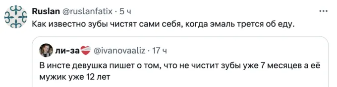 В твиттере обратили внимание на необычный тренд — пользователи соцсетей бросили чистить зубы. В частности, об этом на своей странице рассказала блогерша под ником @kostenko_yara.