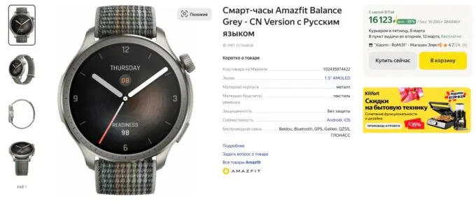 Обычно за Amazfit Balance просят больше 20 косарей, но прямо ейчас на Яндекс Маркете их можно урвать всего за 16 286 рублей. Это самое выгодное предложение из всех, что мы видели.