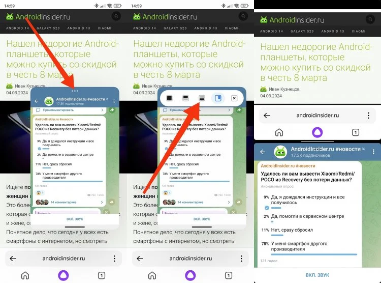 Xiaomi здорово прокачала режим многозадачности. Теперь даже на смартфоне с маленьким дисплеем можно открыть два приложения на одном экране. Активируется эта фича легко, но сначала нужно включить разделение экрана в настройках телефона.