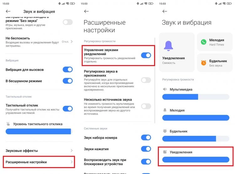 А вы знаете, как настроить громкость уведомлений? Переходим в настройки смартфона, затем выбираем «Звук и вибрация», после — «Расширенные настройки». Здесь активируем переключатель «Управление звуками уведомлений», а затем возвращаемся в раздел «Звук и вибрация» и играемся с настройками.