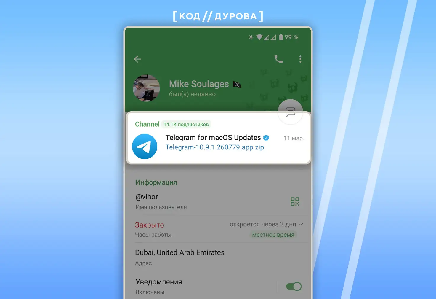 Гигантский инсайд относительно апдейта телеграма выкатили авторы «Кода Дурова». По их информации, скоро мессенджер станет еще ближе к соцсети — например, создатель канала сможет закрепить плашку с названием и описанием прямо под своим аккаунтом.