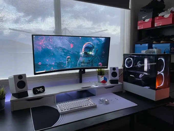 Сверхширокий монитор с нестандартным соотношением сторон 21:9 и изогнутым экраном обеспечит большее погружение в сцену при просмотре фильмов или игр. Вещь очень даже топовая, а вживую смотрится нереально круто. Даже самый бюджетный сетап с таким монитором будет выглядеть в разы дороже своего прайса.