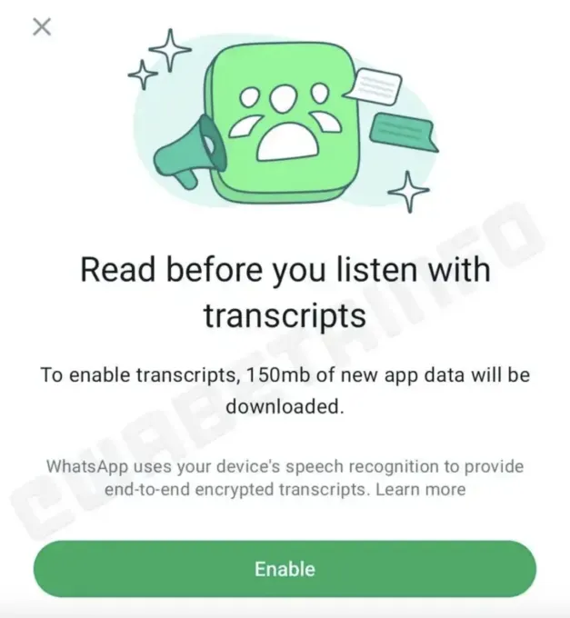 Пользователь сможет перевести аудио в текст простым нажатием на кнопку — опция будет встроена в мессенджер нативно. Перед первой расшифровкой юзер WhatsApp должен будет скачать необходимые скрипты. В дальнейшем этого делать не придется.