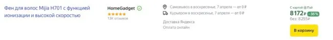 Прямо сейчас на Яндекс Маркете топовый фен Xiaomi Mijia Hair Dryer H701 можно урвать за 8255 рублей, а с кэшбеком некоторых банков он обойдётся ещё дешевле.