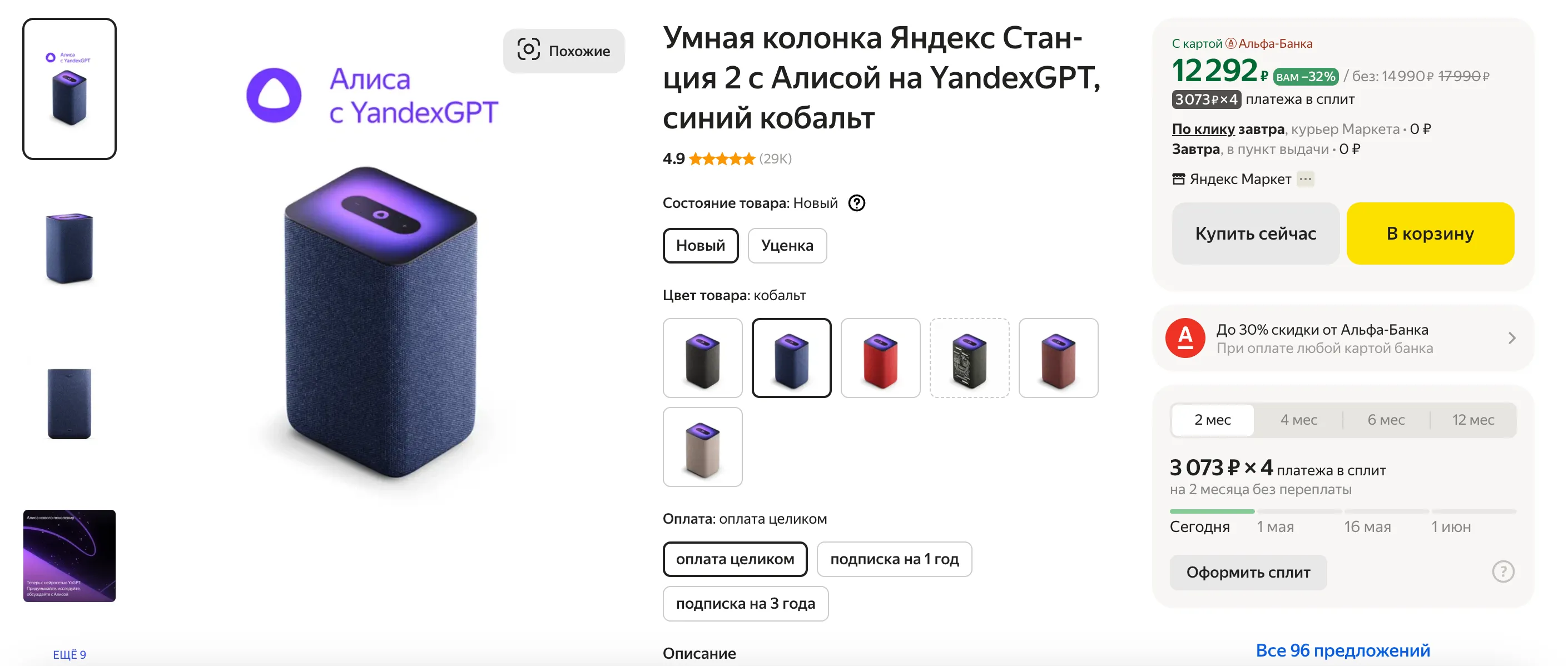 Цены на все модели колонок практически не изменились. Но обращаем внимание на устройство «Яндекс Станция 2» — колонка теперь стоит не 16, а 13 тысяч рублей. Также все «Станции» получили поддержку более умной «Алисы» на базе YandexGPT.