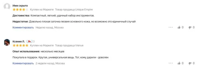 Также к плюсам можно отнести матовый ABS-пластик, который не царапается об воздух и инструменты из качественной стали 30Cr13. Такой девайс точно не сгниёт со временем.