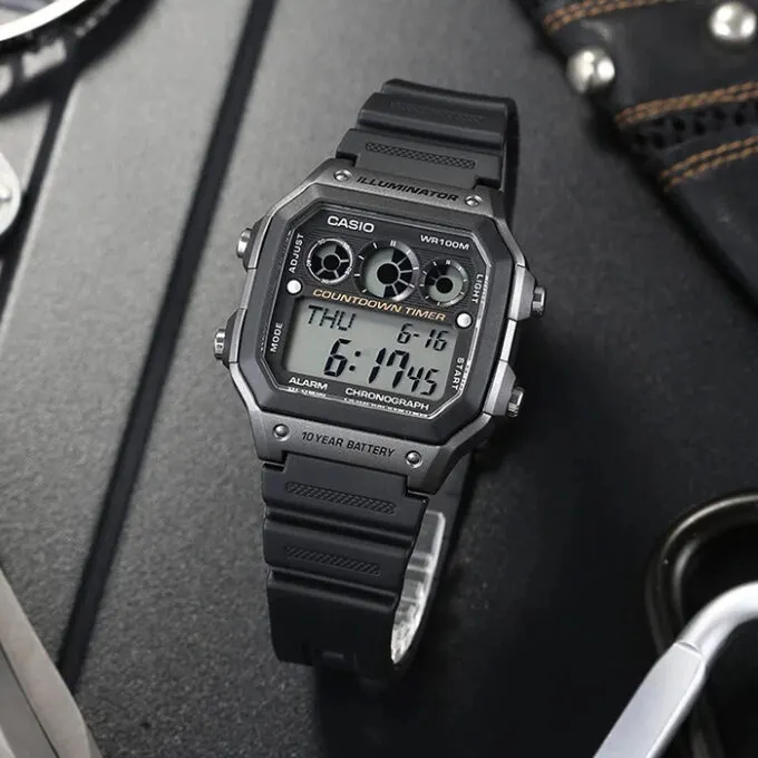 У производителя есть много часов на любой бюджет, но наш фаворит — модель Illuminator AE1300WH-8A. Во-первых, они смотрятся просто отлично. С одной стороны, часы выглядят стильно, а с другой стороны, они в меру строгие — соответственно, можно сочетать с разными образами. Во-вторых, «иллюминатор» восхищает автономностью. В нём установлена батарейка, которую не нужно менять десять лет, так что эти часы можно назвать просто вечными. В-третьих, устройство защищено от воды по стандарту WR100, поэтому их можно не снимать, если собираетесь плавать. Также у часов есть подсветка и функции секундомера/будильника.