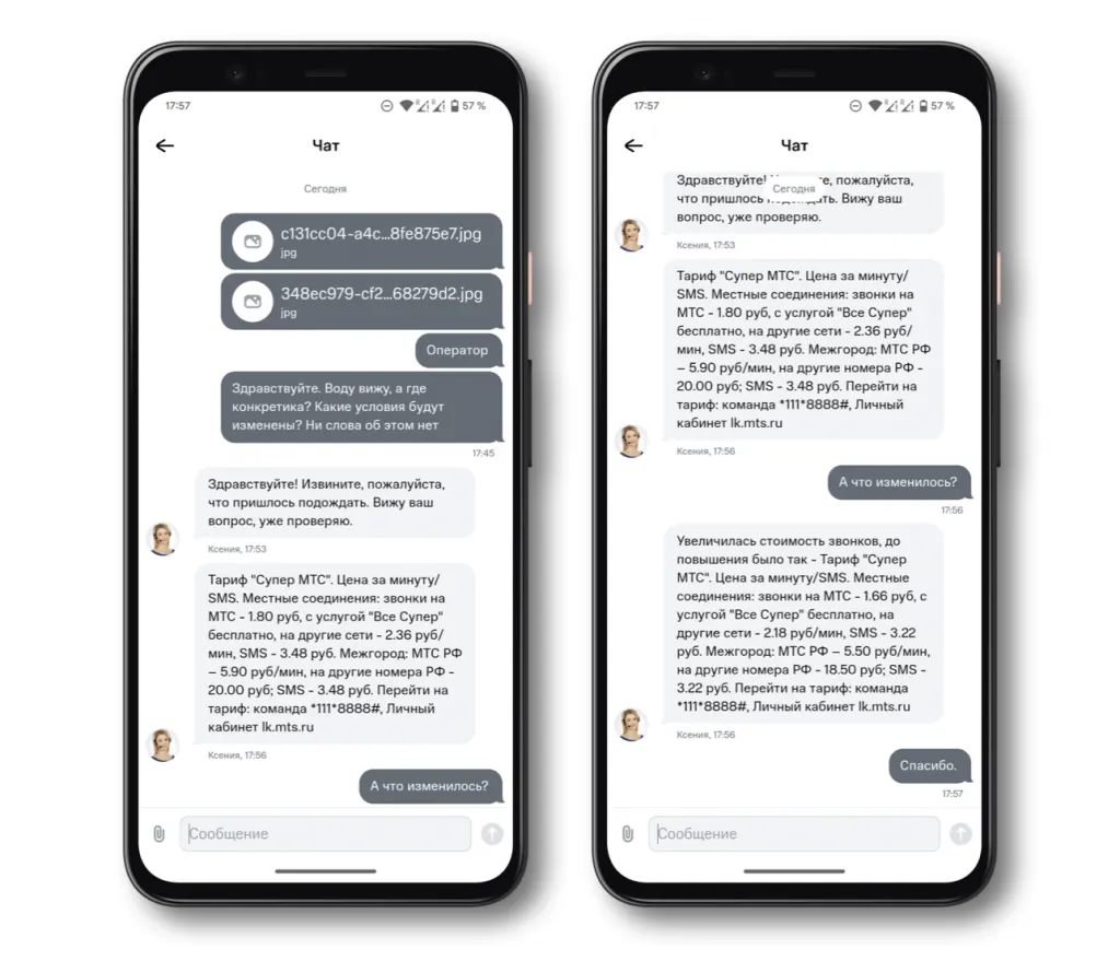 Автор медиа Олег Воронин открыл приложение «Мой МТС» и задал вопрос оператору напрямую. Он спросил, что именно изменится. Сотрудник поддержки прислал старые и новые данные — чтобы клиент их сверил.