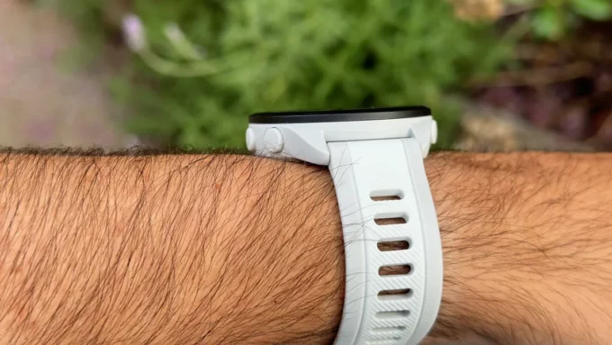 В первую очередь Forerunner 165 поразили автора обзора своими габаритами — они легкие и тонкие. Часы весят 39 граммов и имеет толщину 11,6 мм. Конечно, создателям пришлось пожертвовать емкостью аккумулятора, но в качестве девайса для городских пробежек Forerunner 165 подойдут хорошо. Также они выглядят не так стильно и помпезно, как более дорогие варианты от Garmin.