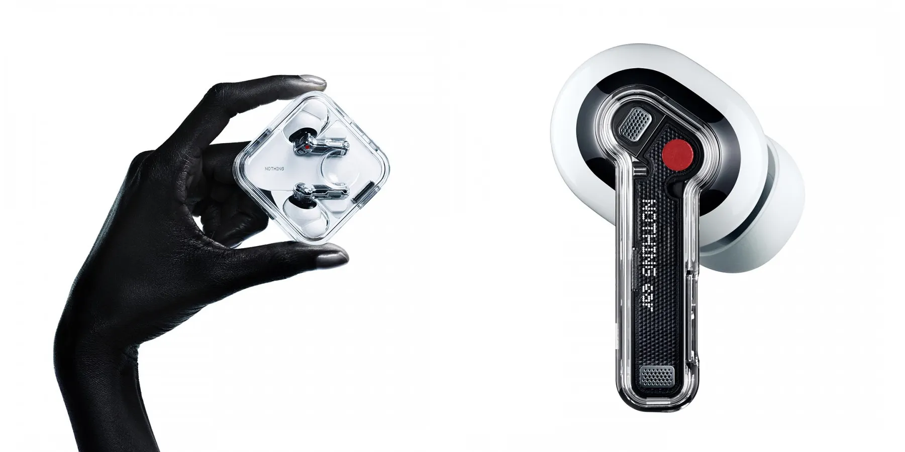 Nohting Ear напоминают классические гарнитуры бренда — такие же наушники с полупрозрачным корпусом, кейс квадратной формы в виде пудреницы, похожий дизайн. Девайс получил 11-мм драйверы с керамической диафрагмой, поддержку Hi-Res Audio, а также кодеков LDAC и LDHC 5.0. Присутствует функция активного шумоподавления и адаптивный режим Adaptive ANC. Время работы на одной зарядке — до 8,5 часов.