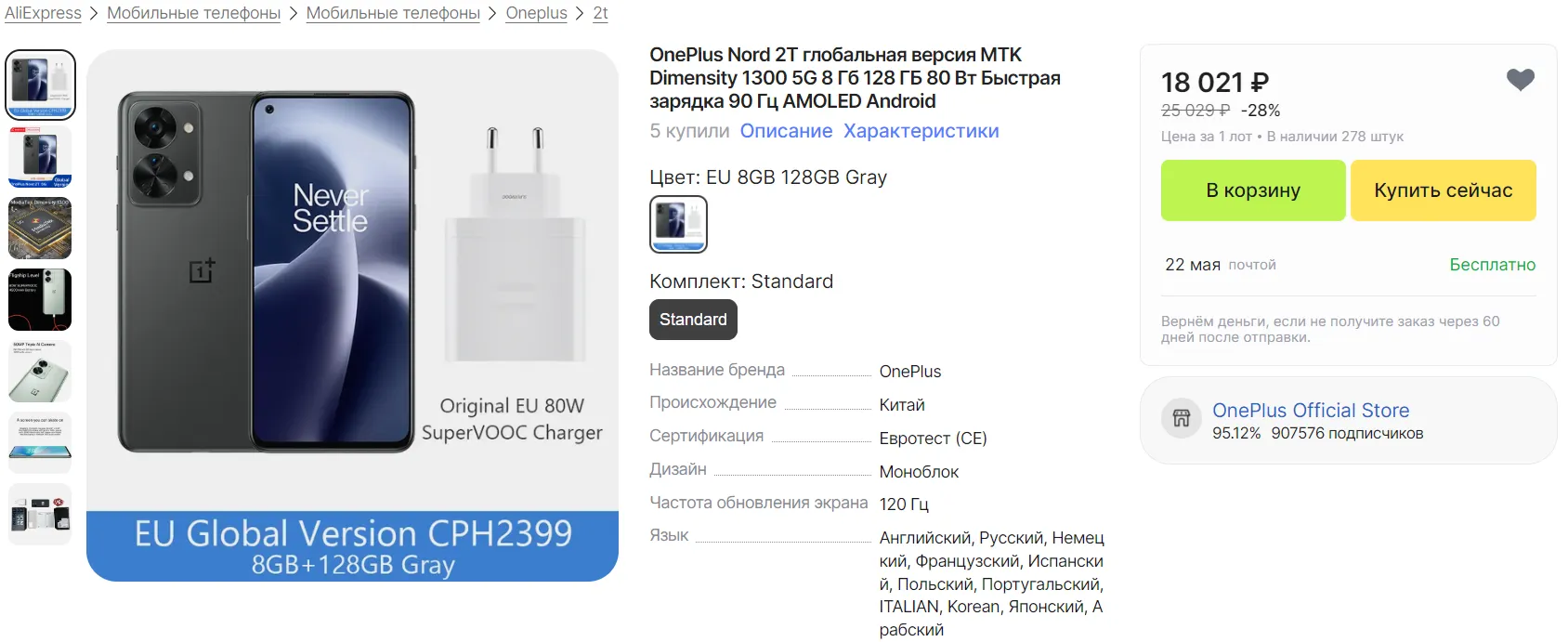 А что по прайсу? Прямо сейчас OnePlus Nord 2T доступен на Али всего за 18 020 рублей. Это бомбезный оффер — если что, год назад «норд» стоил почти 30 кэсов! Смело хватайте гаджет, пока он еще есть в продаже — уверены, скоро запасы смарта иссякнут.