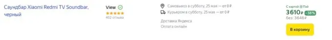 Прямо сейчас Xiaomi Redmi TV Soundbar можно купить на Яндекс Маркете всего за 3646 рублей. А с кэшбеками некоторых банков он обойдётся дешевле 3 косарей.