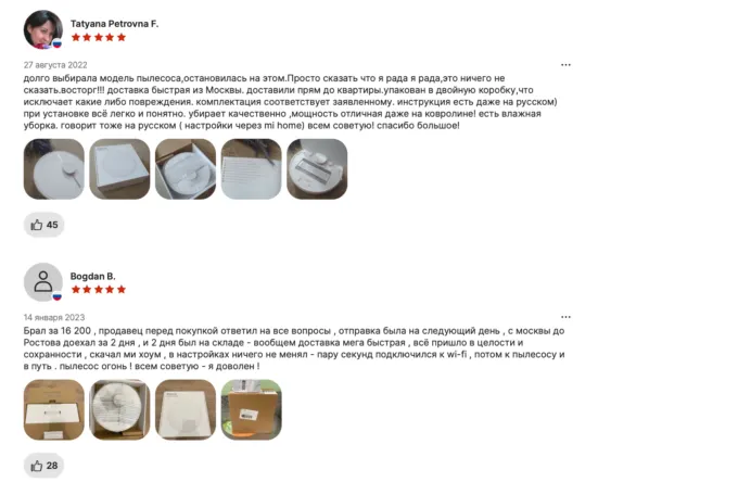 Кроме того, сам пылесос очень популярен среди покупателей. Только на одном лоте набралось более 4 тысяч заказов, а отзывов собралось более 750, причём средняя оценка составляет 4.9/5. Вот некоторые рецензии: