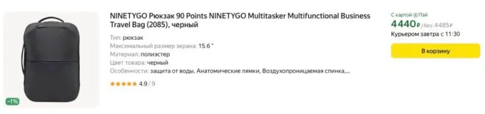 Обычно за Xiaomi NinetyGo Multitasker Business Travel Backpack просят под 6 косарей рублей, но сейчас на Яндекс Маркете его можно забрать за 4485 рублей. А с кэшбеками некоторых банков он может обойтись около 3 косарей.