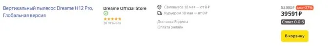 Обычно за Dreame H12 Pro просят около 60 косарей, но прямо сейчас на Яндекс Маркете топовый моющий пылесос можно урвать всего за 39 590 рублей. Также не забывайте про кэшбеки, которые позволят сэкономить ещё больше.