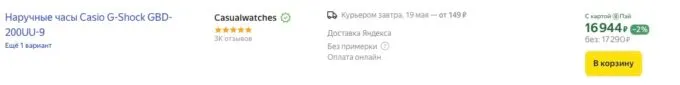 Прямо сейчас стильные Casio G-Shock GBD-200UU можно урвать на Яндекс Маркете всего за 17 290 рублей. А с кэшбеками некоторых банков они обойдутся дешевле 15 косарей.