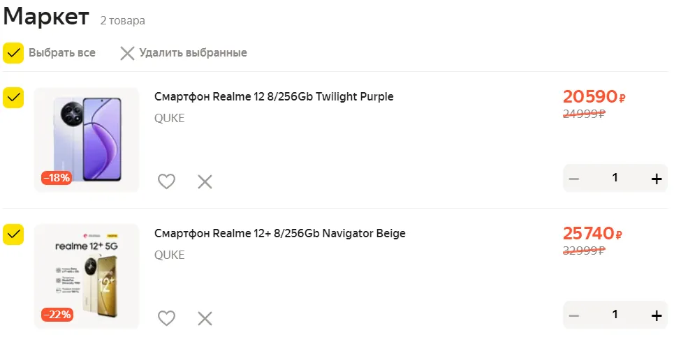 Что по ценам? Официально за классический Realme 12 5G просят 22 999 рублей, а за 12+ — от 29 999 до 34 999 рублей в зависимости от комплектации. Мы залезли на Маркет и увидели, что на этой площадке девайсы уже немного подешевели. К примеру, «двенашка» доступна за 20 590 рублей, «плюс» — за 25 740 рублей. Выгодно!