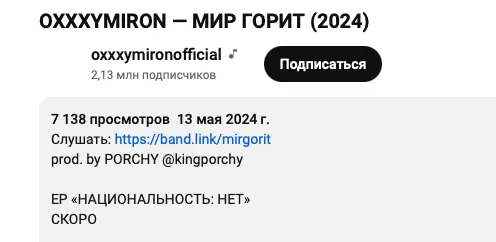 13 мая рэпер отреагировал на последние события треком «Мир горит», а в описании к ролику на ютубе еще и анонсировал скорый выход мини-альбома.