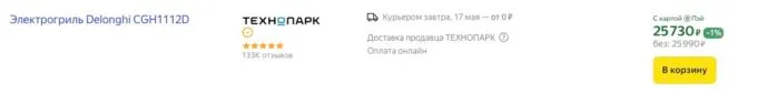 Обычно цены на такие грили стартуют с 35 тысяч рублей, но сейчас De’Longhi MultiGrill CGH 1112D можно урвать на Яндекс Маркете всего за 25 990 рублей. Также не забывайте, что некоторые банки готовы отсыпать щедрый кэшбек за покупки на этой платформе.