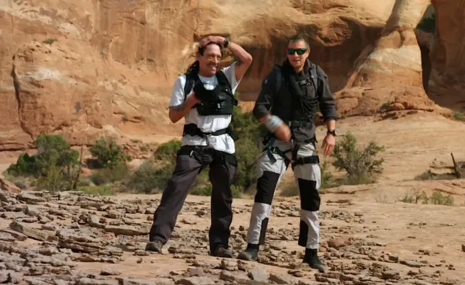 Схема та же: Беар рассказывает о выживании, но уже не один, а со звездным компаньоном. Райан Рейнольдс, Натали Портман, Флоренс Пью, Ченнинг Татум, Дэнни Трехо и даже Роджер Федерер – вот неполный список больших звезд, которым Гриллс провел уроки выживания. Естественно, уровень экстремальности в таких выпусках снижен практически до нуля, потому что все гости застрахованы наглухо в семь слоев офисной бумаги. Так что шарм оригинального «Выжить любой ценой» официально уничтожен.