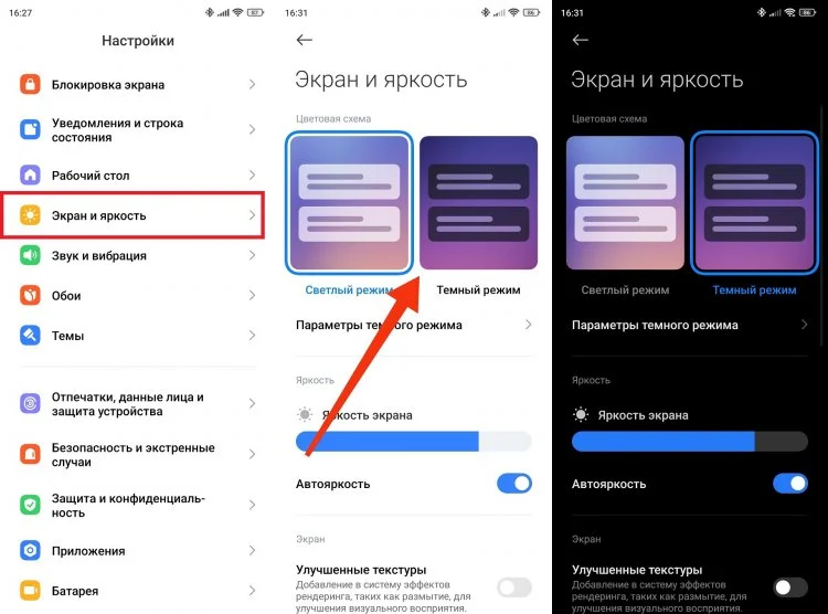 Если не пользовались темной темой на смартфоне, самое время полюбить этот режим. Ведь при его активации в ночное время экран OLED-смартфона преимущественно заполняется черными и серыми цветами. При их отображении дисплей почти не расходует заряд аккумулятора. Настроить тему можно в том же разделе настроек «Экран и яркость».
