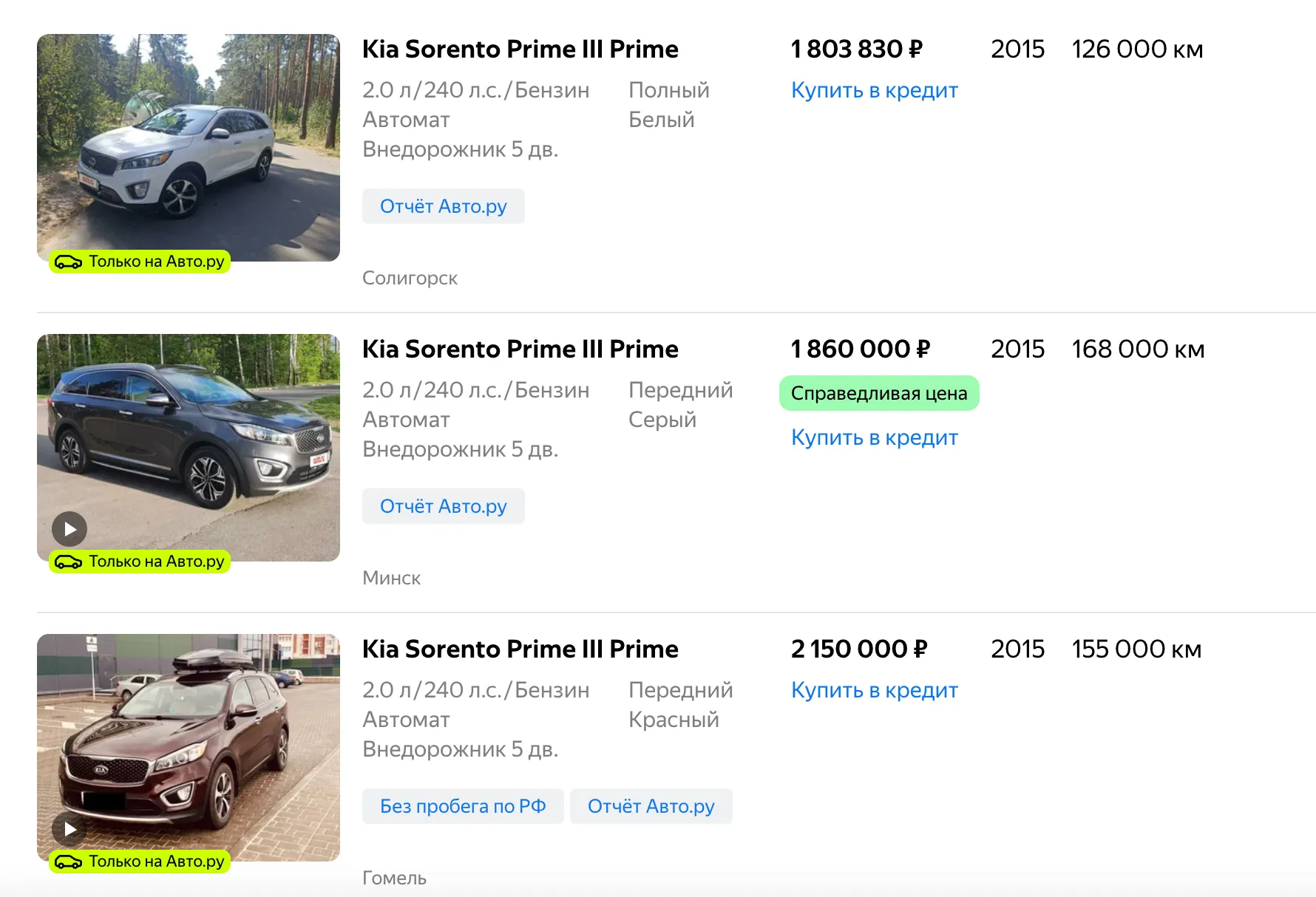 Sorento Prime III можно купить за 2 млн рублей, если рассматривать автомобили 2015 года выпуска. Если чуть доплатить, то появятся варианты помоложе с пробегом меньше 100 тысяч км.