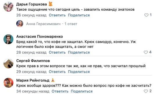 Зрители, смотревшие игру, не оценили такой подход Крюка. Кто-то и вовсе посчитал, что телешоу для интеллектуалов превратилось в сумасшедший дом.