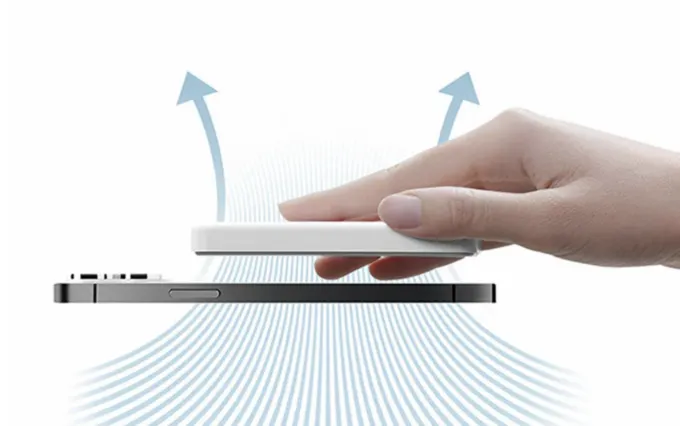 Пауэрбанк легкий и тонкий, он имеет толщину 12 мм. Девайс получил магниты, с помощью которых он надежно крепится к задней панели телефона. Лучший контакт будет с iPhone через MagSafe, но подойдут и более старые модели.