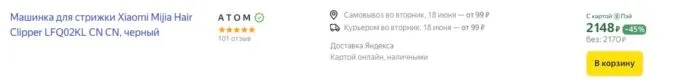 Сйчас шикарную машинку для бритья и стрижки Xiaomi Mijia Hair Clipper можно урвать на Яндекс Маркете за 2170 рублей, а с кэшбеками некоторых банков она обойдётся в ~1500 рублей.