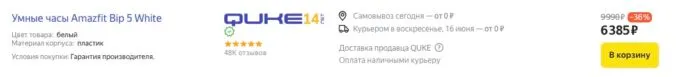 Обычно за Amazfit Bip 5 просят около 7-8 косарей, но прямо сейчас на Яндекс Маркете популярные смарт-часы можно урвать за 6385 рублей.
